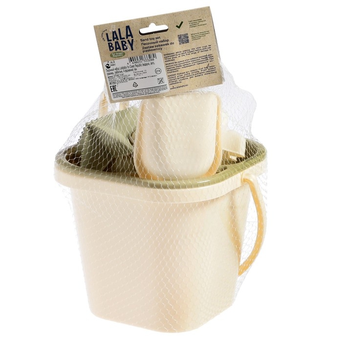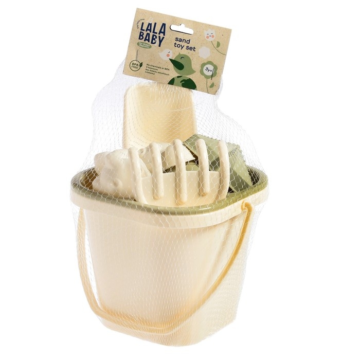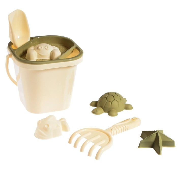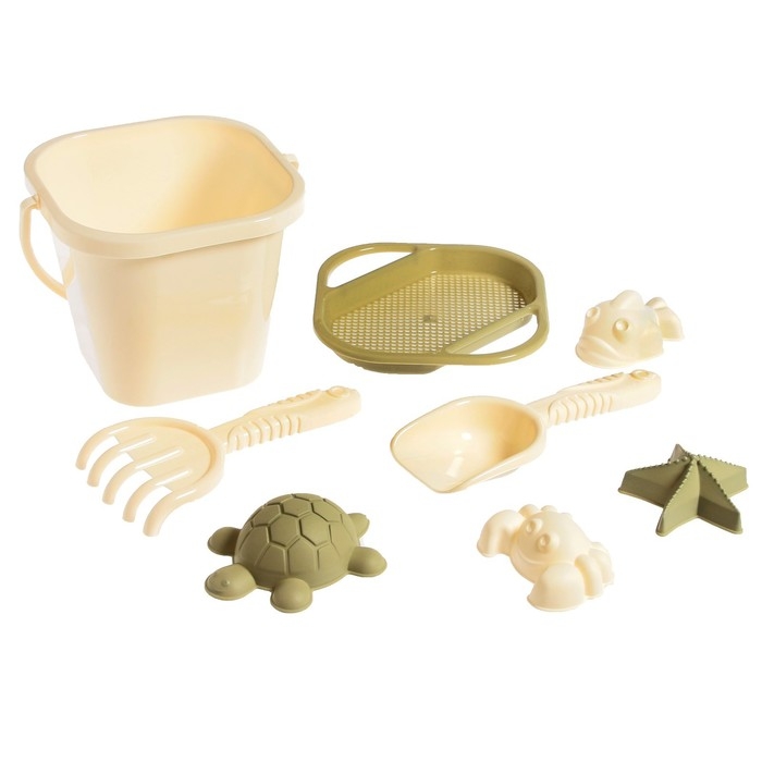 Набор для игры в песке, 8 предметов: совочек, грабельки, сито, ведерко, 4 мягкие формочки