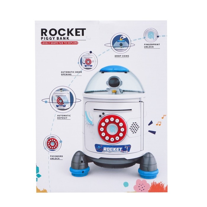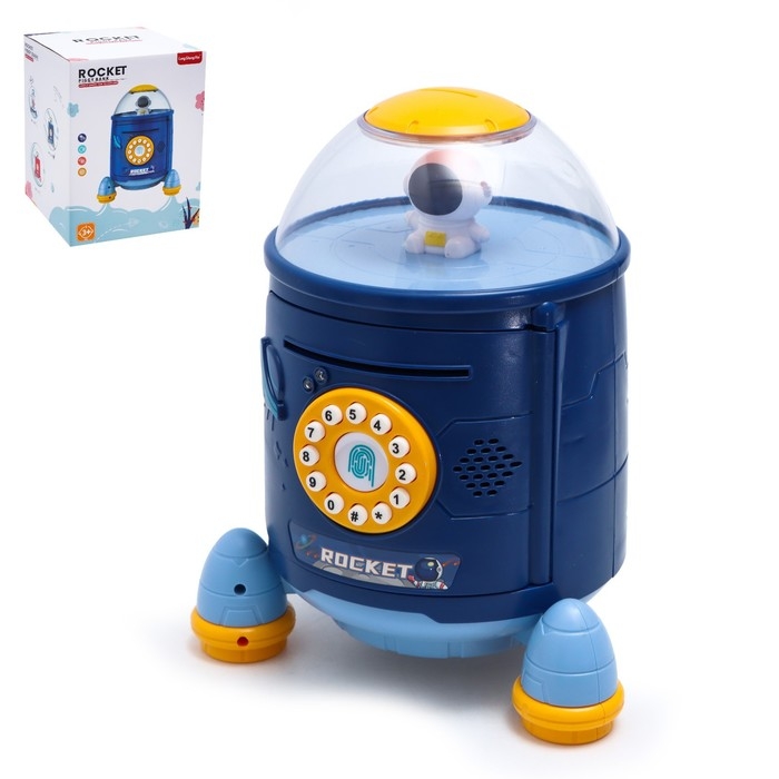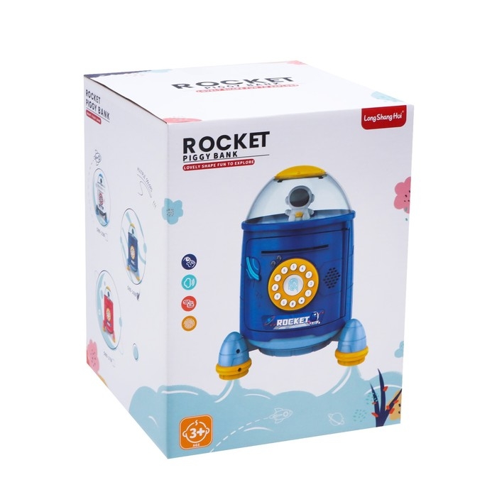 Копилка «Ракета», свет, звук, засасывает купюры, цвет синий