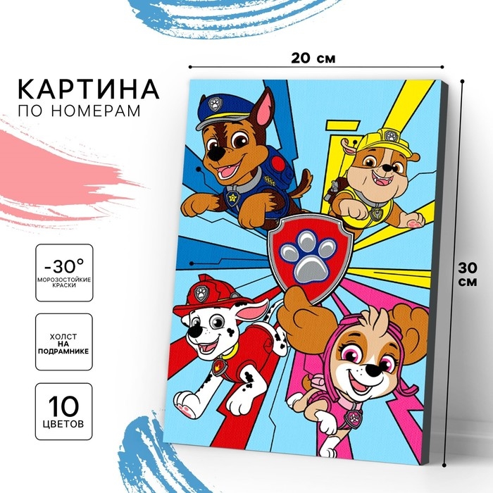 Картина по номерам для детей, 20х30 см, Щенясий патруль