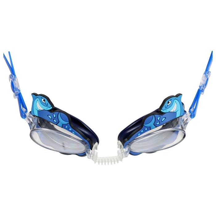Линзы очков изготовлены из поликарбоната, имеют покрытие от УФ-излучения для защиты глаз ребёнка. Покрытие антифог защищает от запотевания очков. Мягкий и комфортный уплотнитель обеспечивает герметичность во время плавания. Ремешок регулируется под нужный обхват головы.