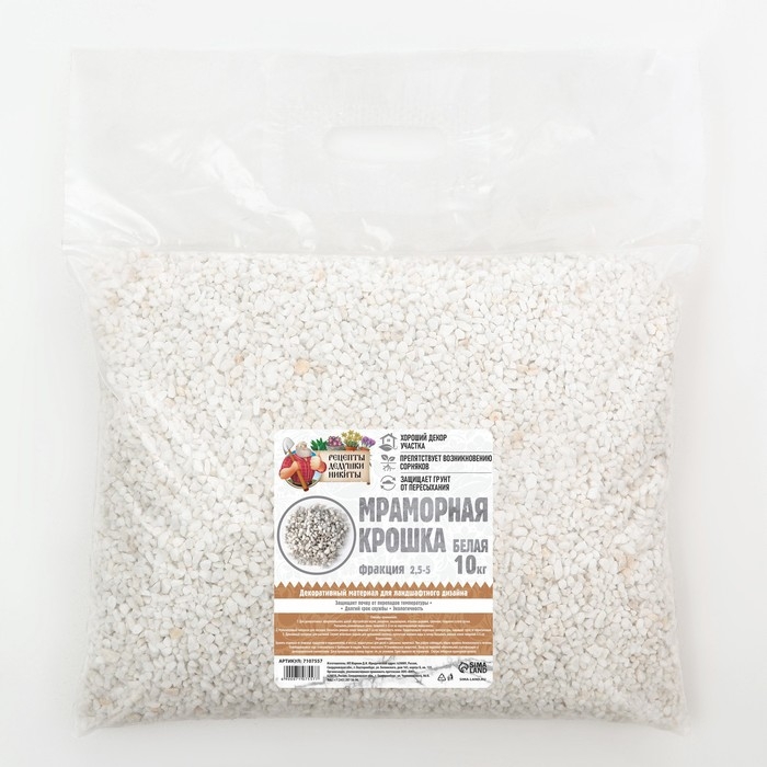 Мраморная крошка "Рецепты Дедушки Никиты", отборная, белая, фр 10-20 мм , 10 кг