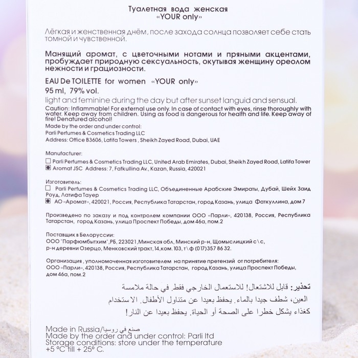 Туалетная вода женская YOUR Only - это манящий аромат, с цветочными нотами и пряными акцентами.