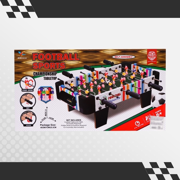 Настольный футбол понравится не только ребёнку, но и взрослому. В процессе участники почувствуют азарт соревнований и укрепят командный дух. Правила просты: крутите ручки, забивайте мячи и получайте удовольствие! А самое главное, играть можно в любой сезон, не дожидаясь лета.