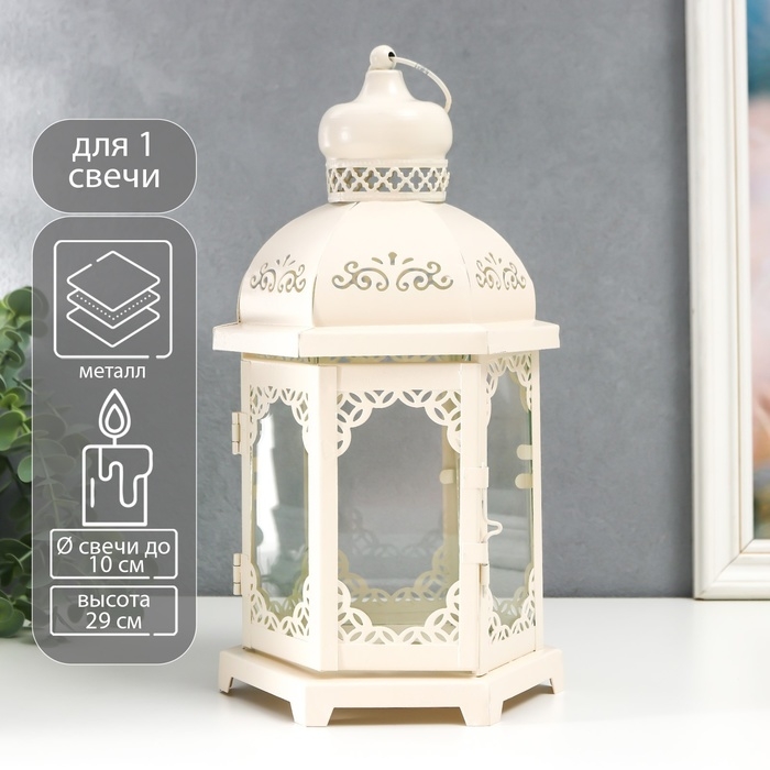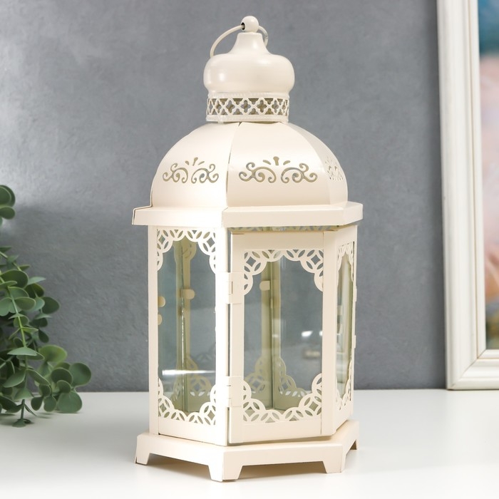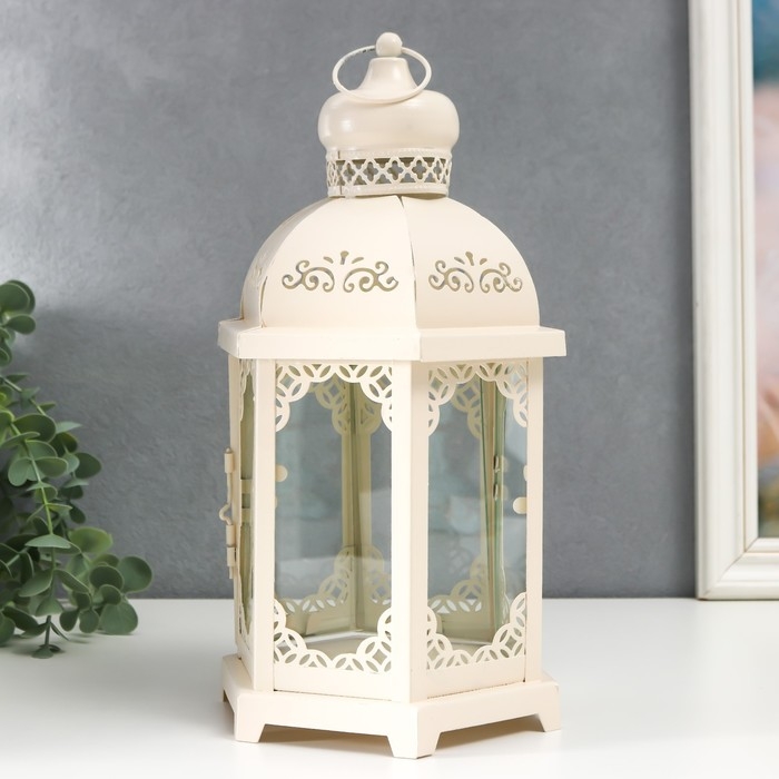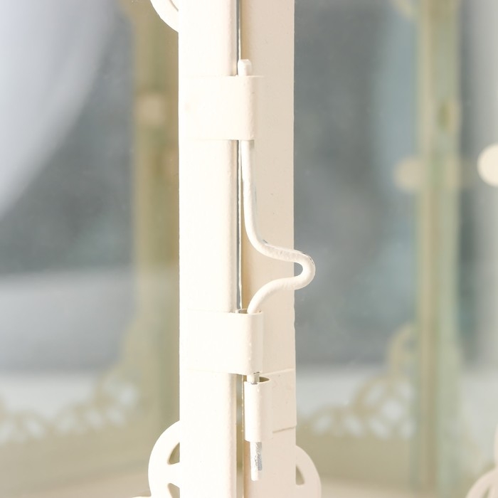 Подсвечник металл, стекло "Фонарь - цветущие вензеля" d-10 см белый 13,5х15х29 см