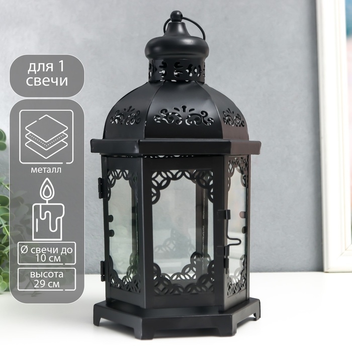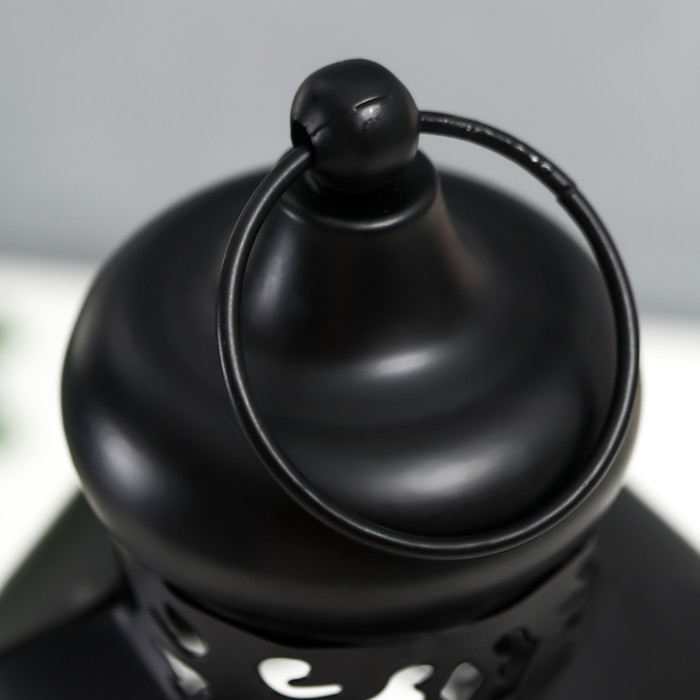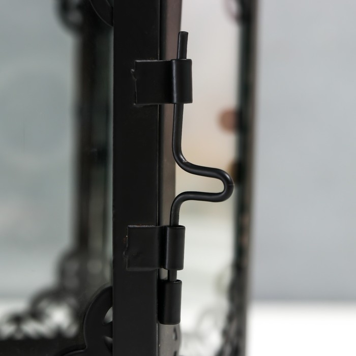 Подсвечник металл, стекло "Фонарь - цветущие вензеля" d-10 см чёрный 13,5х15х29 см