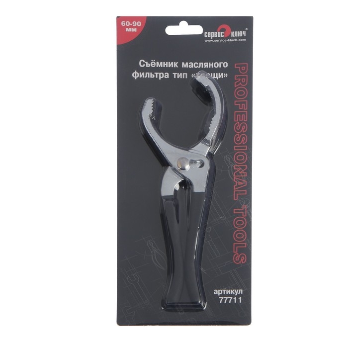 Съемник масляного фильтра СЕРВИС КЛЮЧ, 77711, тип "клещи", 60 - 90 мм
