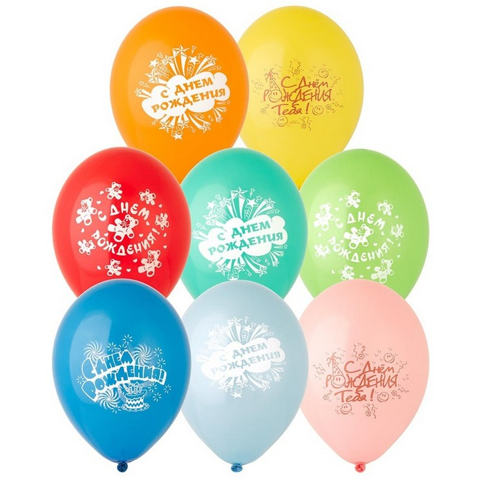 Шар латексный 14" «С днём рождения», набор 50 шт., цвета МИКС