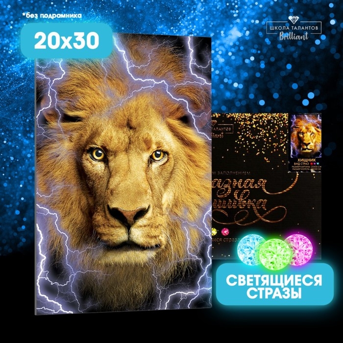 Алмазная мозаика с полным заполнением со светящимися стразами на холсте «Хищник», 20 х 30 см