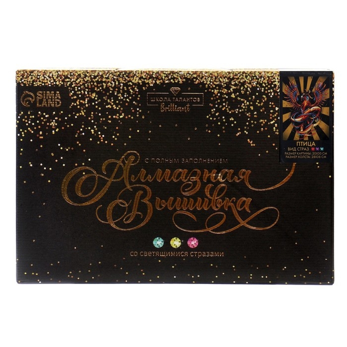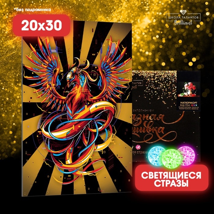 Алмазная мозаика с полным заполнением со светящимися стразами на холсте «Птица», 20 х 30 см