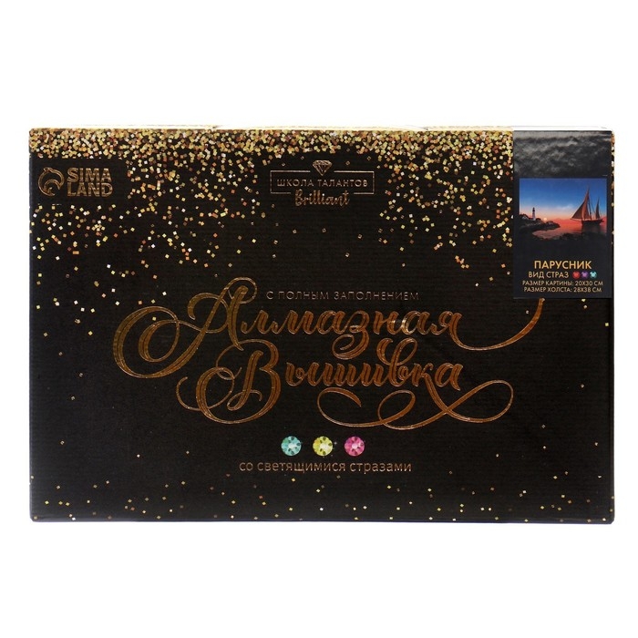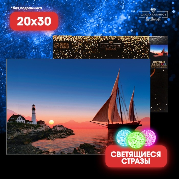 Алмазная мозаика с полным заполнением со светящимися стразами на холсте «Парусник», 20 х 30 см