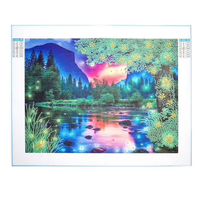 Алмазная мозаика с частичным заполнением и форменными стразами на холсте «Чарующий пейзаж», 30 х 40 см