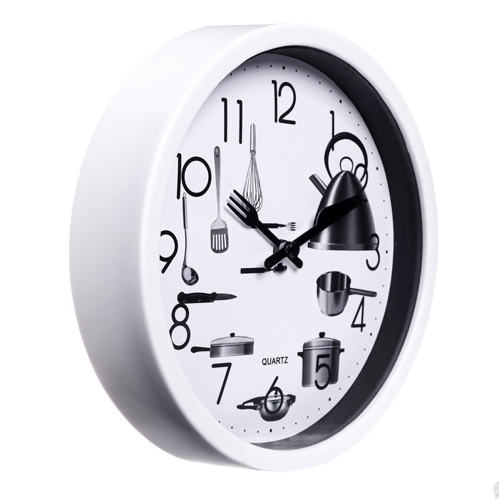 Часы настенные, для кухни, "Кухонные приборы", бесшумные, d-20 см