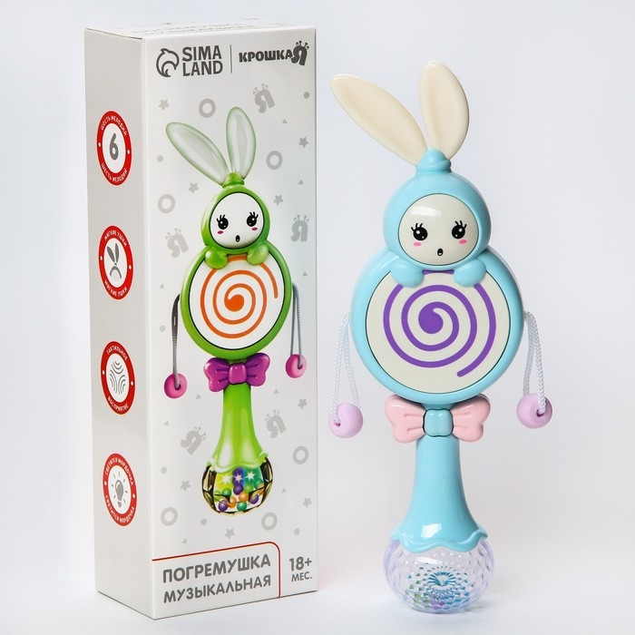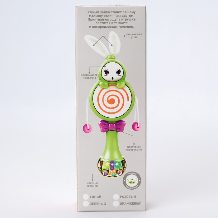 Погремушка музыкальная «Зайка барабан», эластичные ушки, цвет МИКС, Крошка Я
