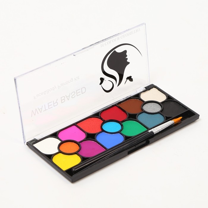 Аквагрим профессиональный для лица и тела, 15 цветов + 2 кисточки