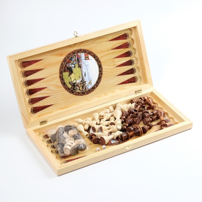 Настольные игры 3в1 "Куликовская битва": шахматы, шашки, нарды, деревянные, большие, 50х50см