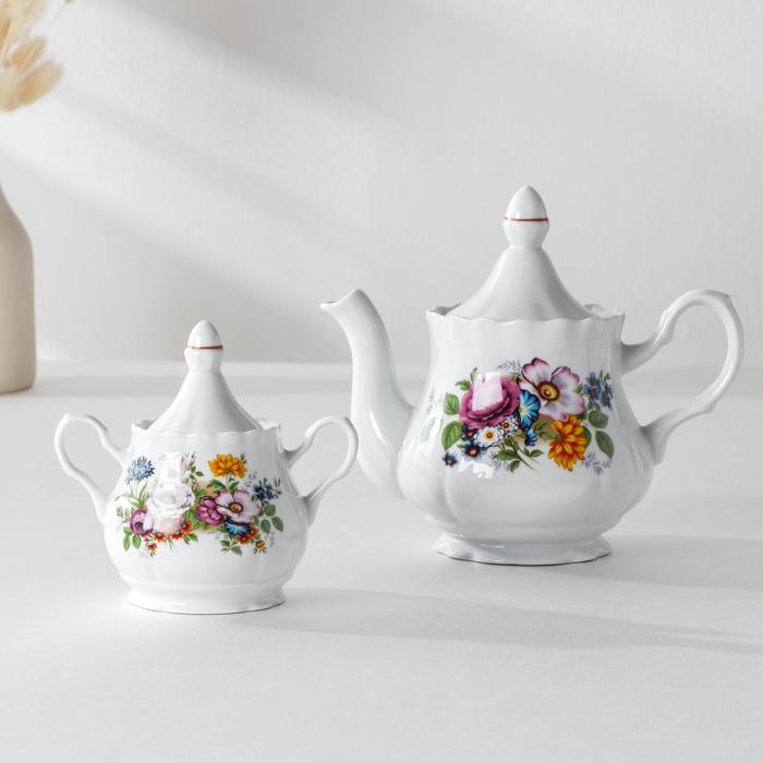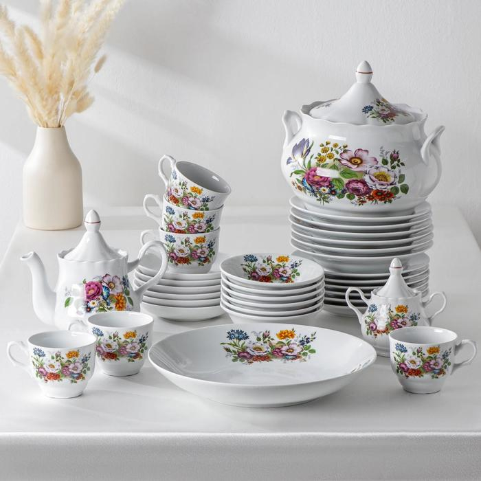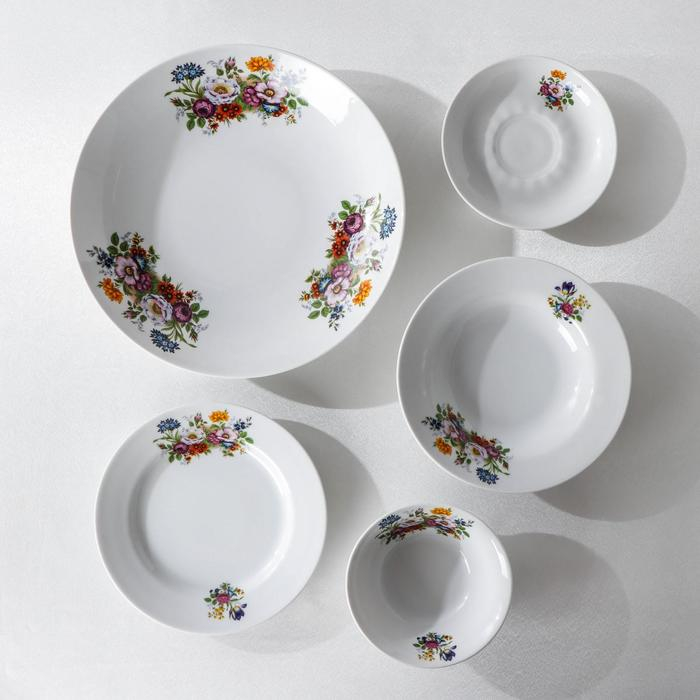 Набор столовой посуды Добрушский завод «Букет цветов», 34 предмета, фарфор, белый