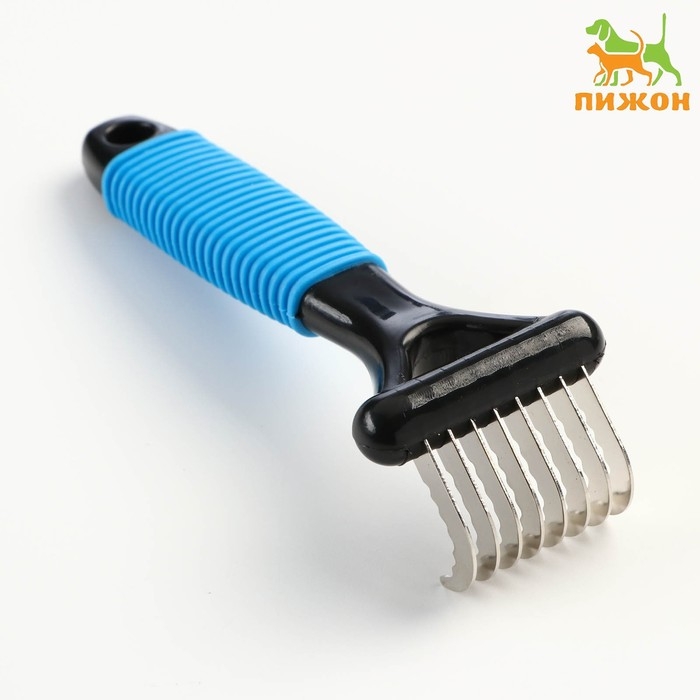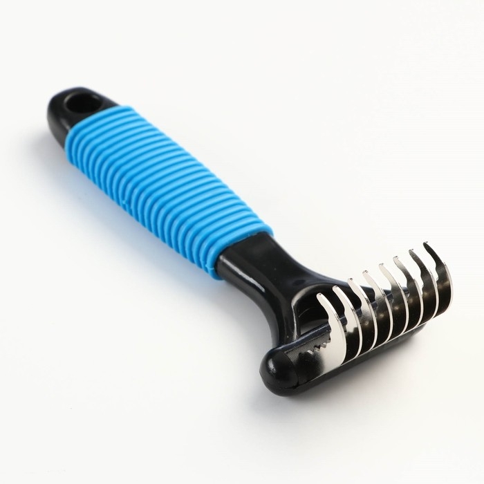 Колтунорез загнутый, 8 лезвий, 5,5 х 15 см, чёрно-синий