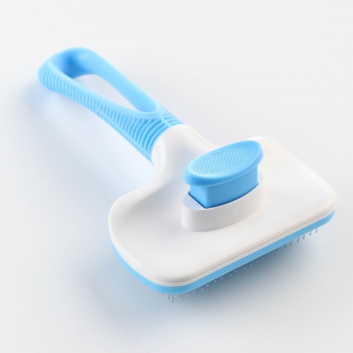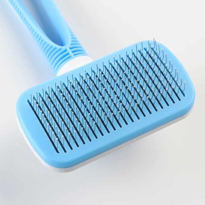 Пуходёрка пластиковая с функцией самоочистки, 7,7 х 19,1 см, голубая