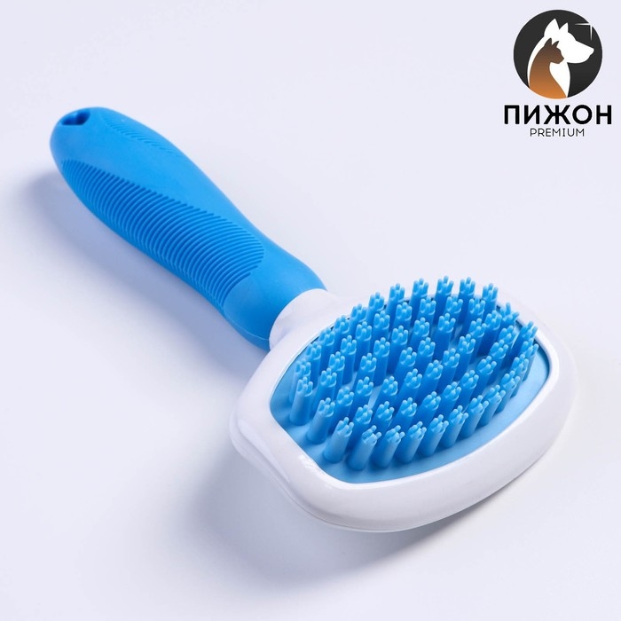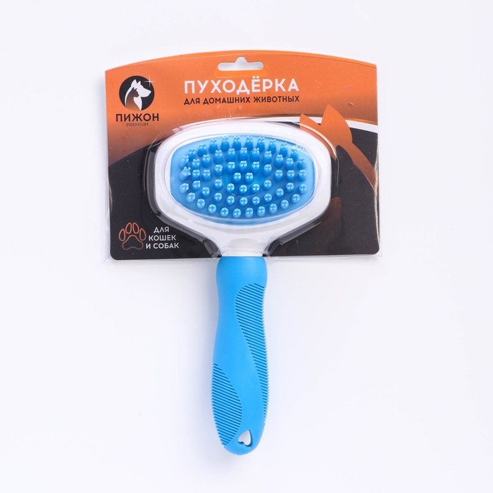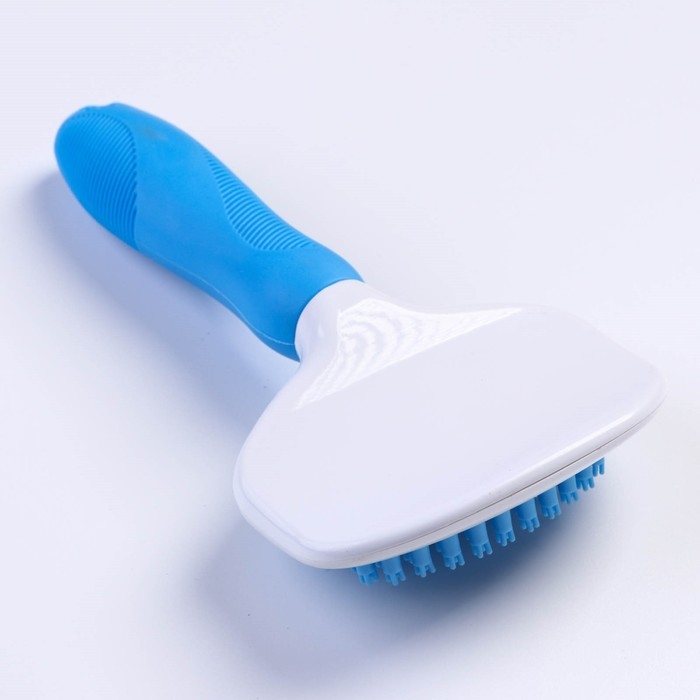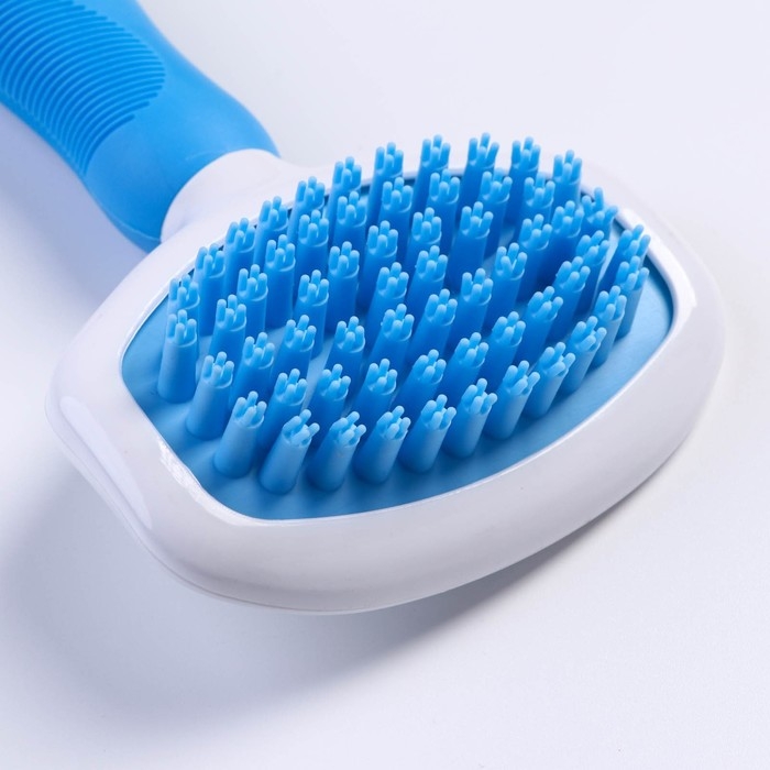 Щётка шерсти с удлиненными силиконовыми зубцами и массажным эффектом, 9,8 х 18,5, голубая