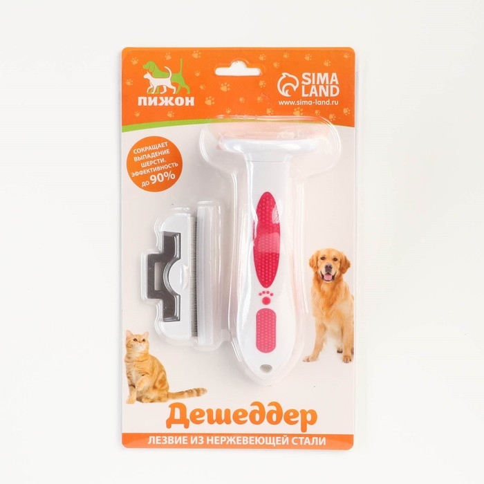 Дешеддер средний со съёмным лезвием, 15 х 7,8 см, бело-розовый