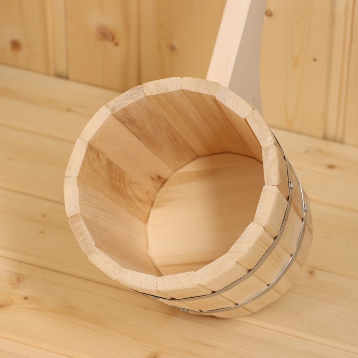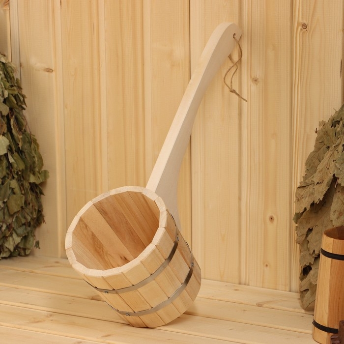 Ковш-черпак из липы 1.5л, 48 см, нержавеющий обруч, с горизонтальной ручкой