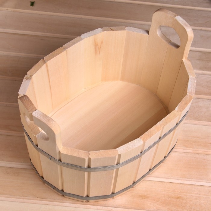 Шайка-таз из липы, 15 л, овальная, нержавеющий обруч, "Добропаровъ"