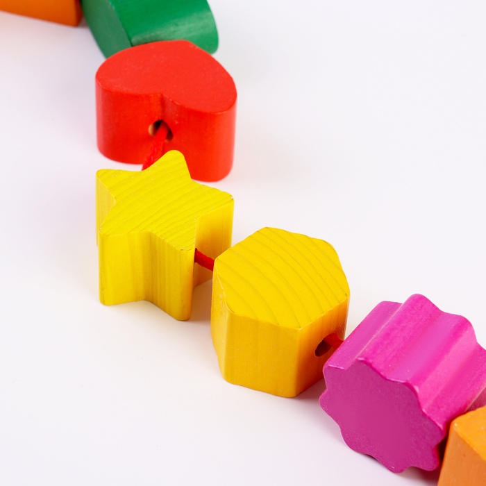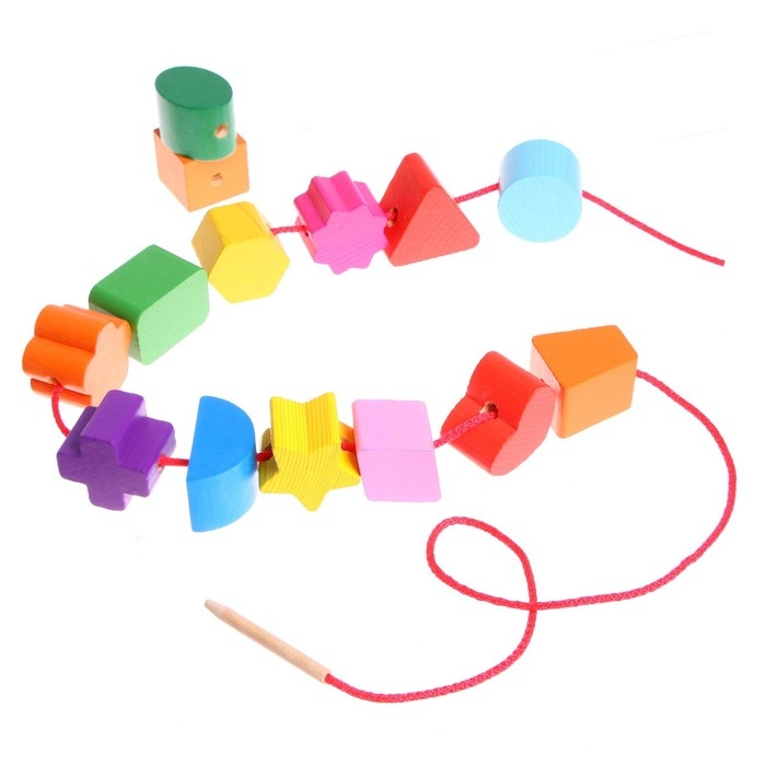 Во время нанизывания деталей на шнурок, развивается мелкая моторика ребёнка, ловкость и усидчивость, сосредотачиваясь на процессе.