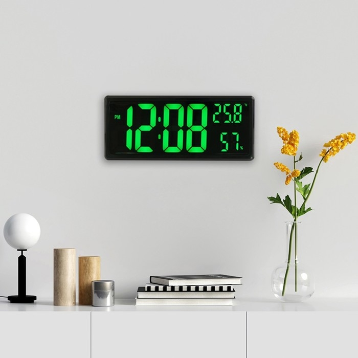Часы электронные настенные, календарь и термометр, 36.2 х 15.5 см, белые цифры 10 х 4.5 см 1076627