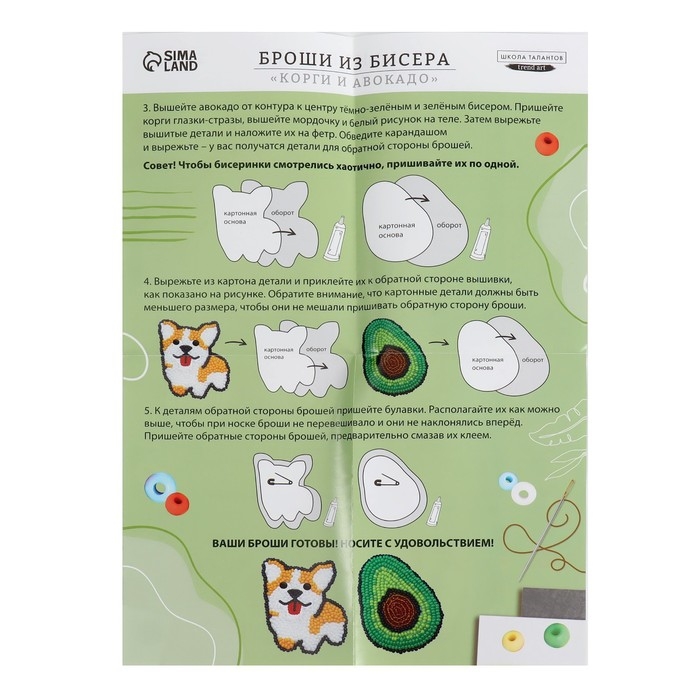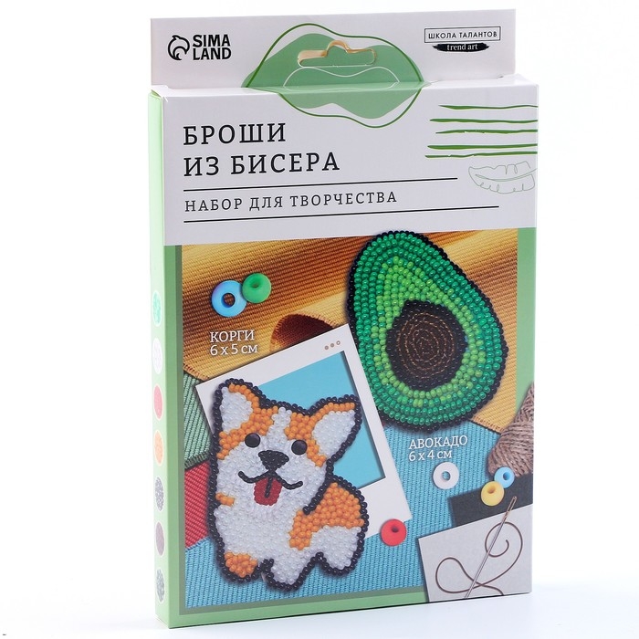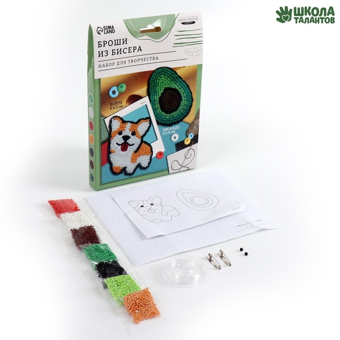 Вышивка бисером. Брошь «Корги и авокадо», набор для творчестваа
