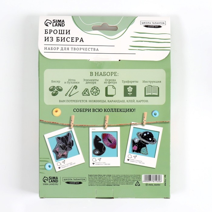 - Внутри вы найдёте основу, трафареты, инструменты и элементы декора для изготовления двух аксессуаров.