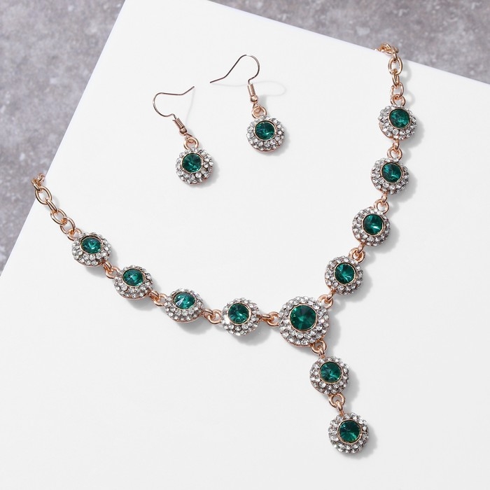 Набор 2 предмета: серьги, колье «Великолепный век», цвет бело-изумрудный в золоте, 42 см