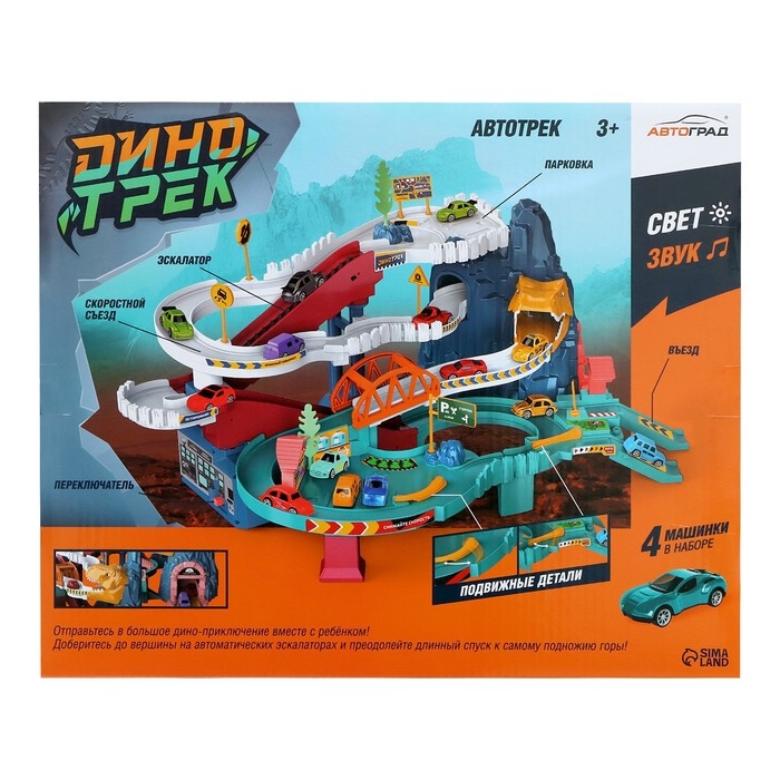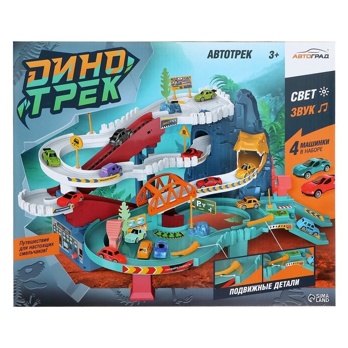 Представьте, что на мегаполис вдруг напали динозавры. Страшно? А ваш малыш точно не испугается. Автотрек «Виражи» воплотит в жизнь сценарии популярных фильмов — здесь древние животные будут соседствовать с городом машин.