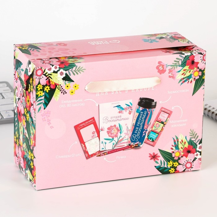 Подарочный набор «Любимому воспитателю»: ежедневник А5, 80 листов, ручка, стикеры, термостакан 350 мл и магнитные закладки