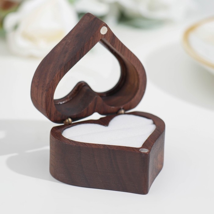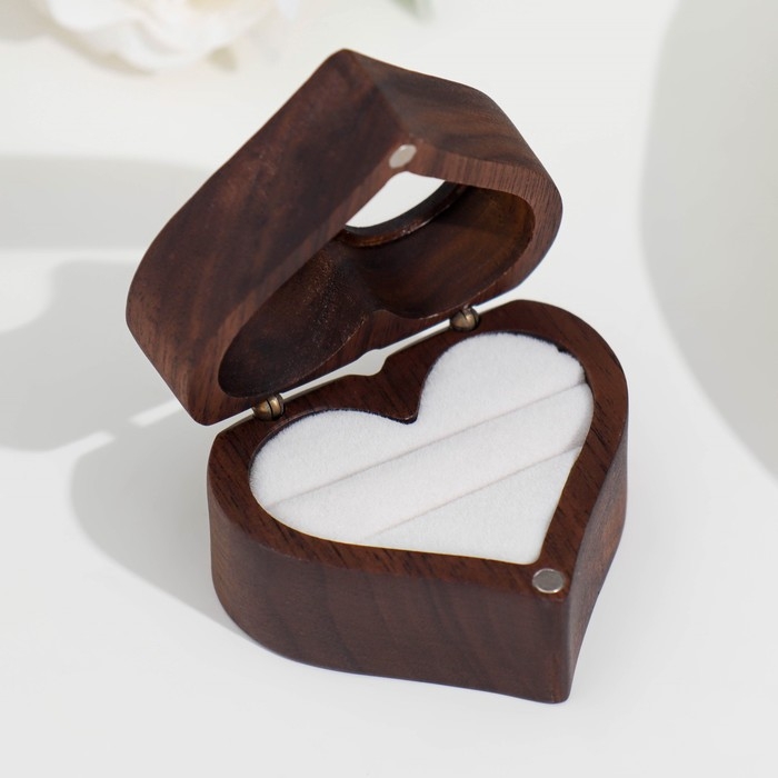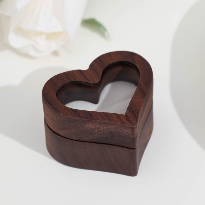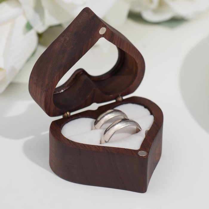 Шкатулка для колец "Сердце", белая подушка, темное дерево