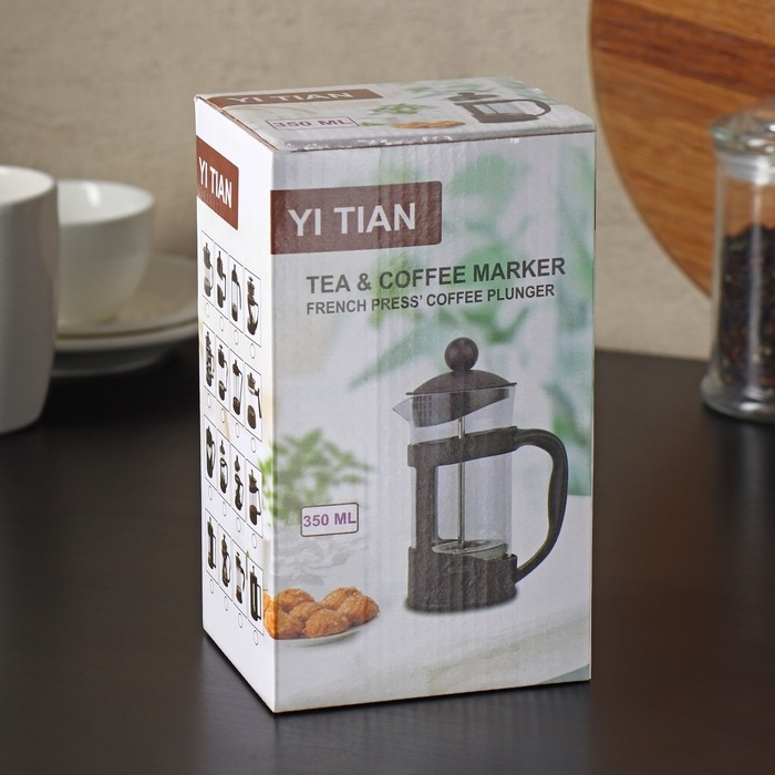 Чайник заварочный френч - пресс Доляна «Оливер», 350 мл, стекло, цвет чёрный