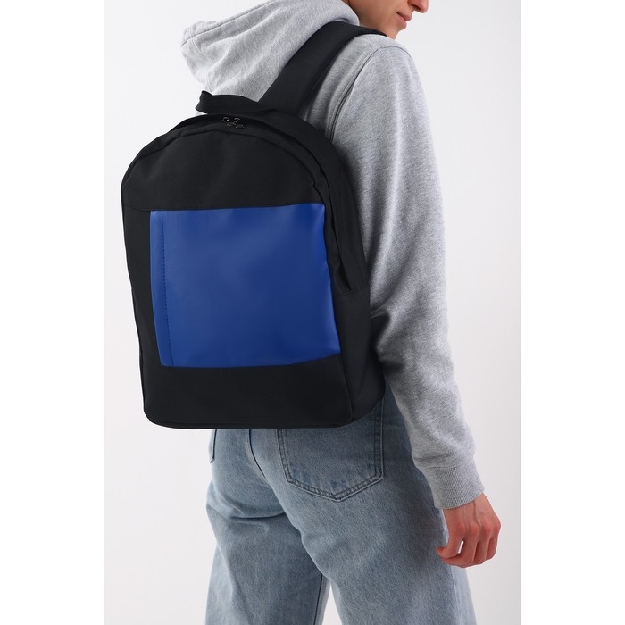 Рюкзак школьный на молнии, цвет чёрный/синий