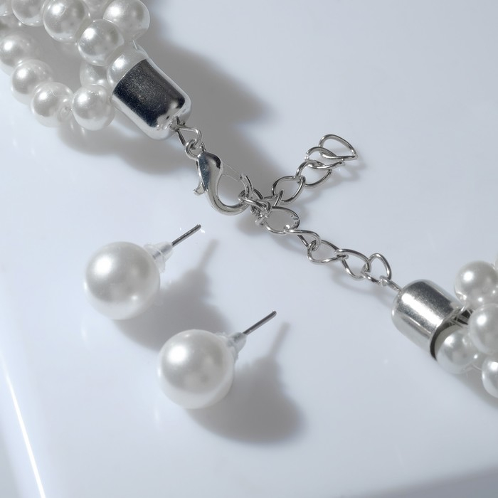 Набор 2 предмета: серьги, шар d=1, бусы «Жемчужный жгут», цвет белый, 45 см