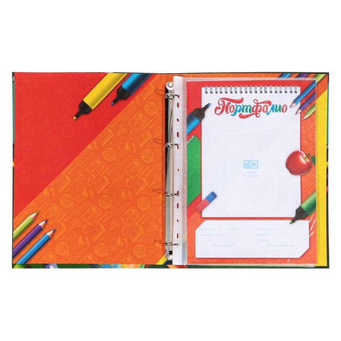 Папка школьная на кольцах «Портфолио школьника», 6 листов-разделителей, 24,5 х 32 см.