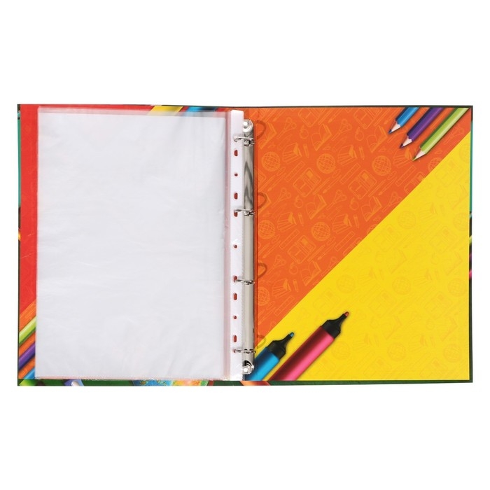 Папка-портфолио А4, Calligrata "Переменка", пластиковая, на 4 кольцах, для школьника, без вкладышей