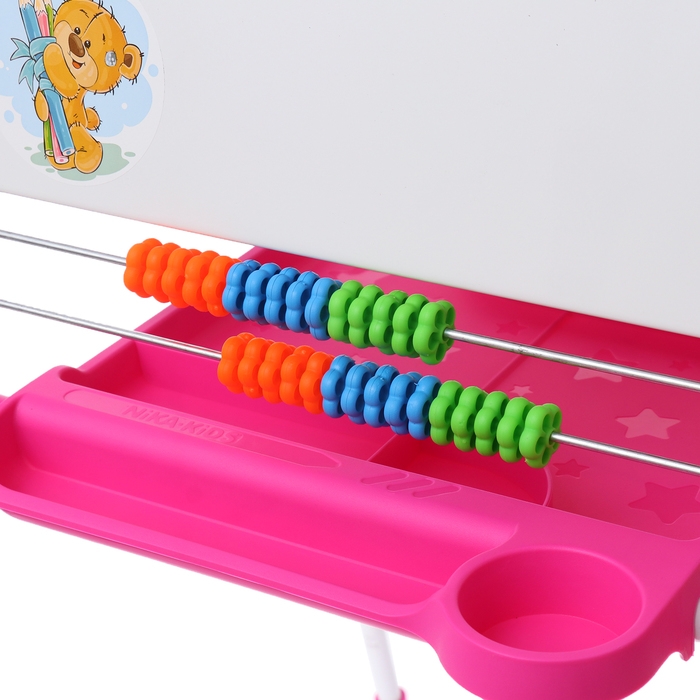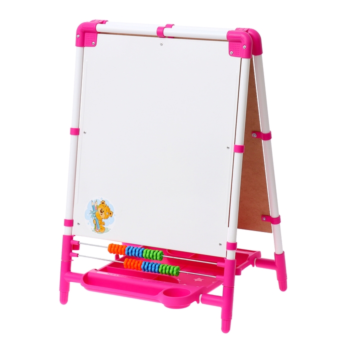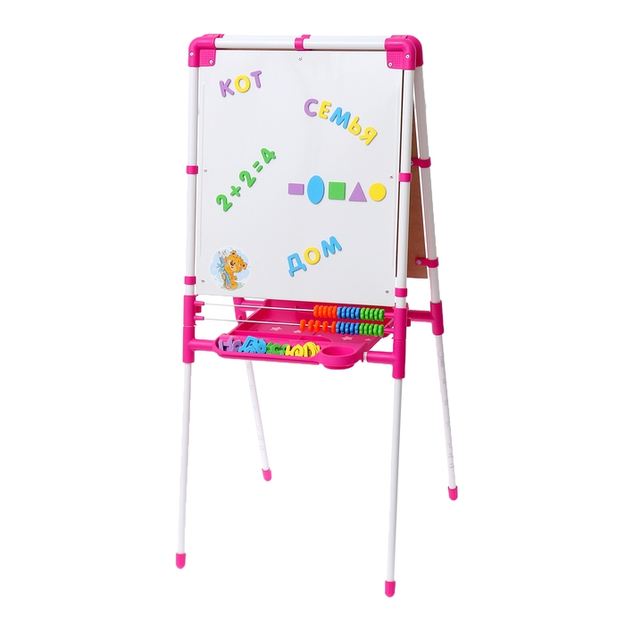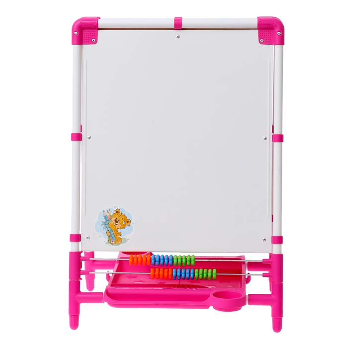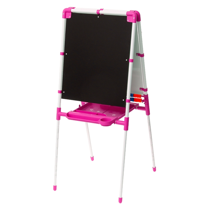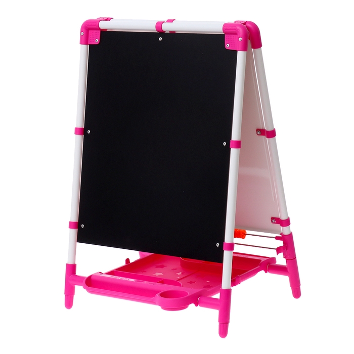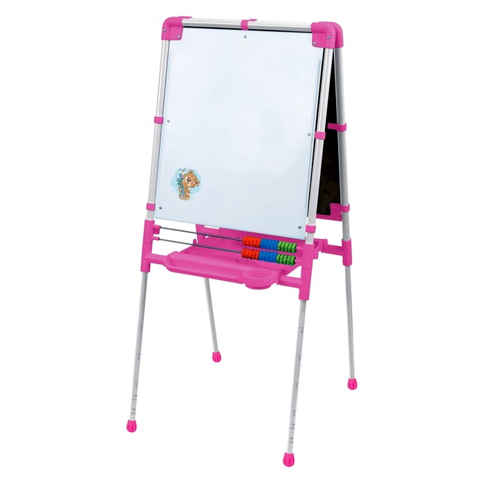 Мольберт детский двусторонний «Доска знаний», регулируется по высоте, + учебные принадлежности, цвет розовый