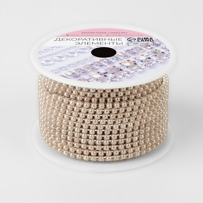 Цепь с жемчугом, металл, пластик, 2 мм, SS6, 9 ± 1 м, цвет бронзовый