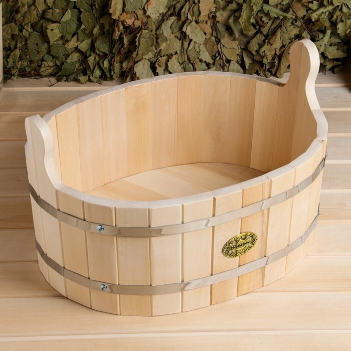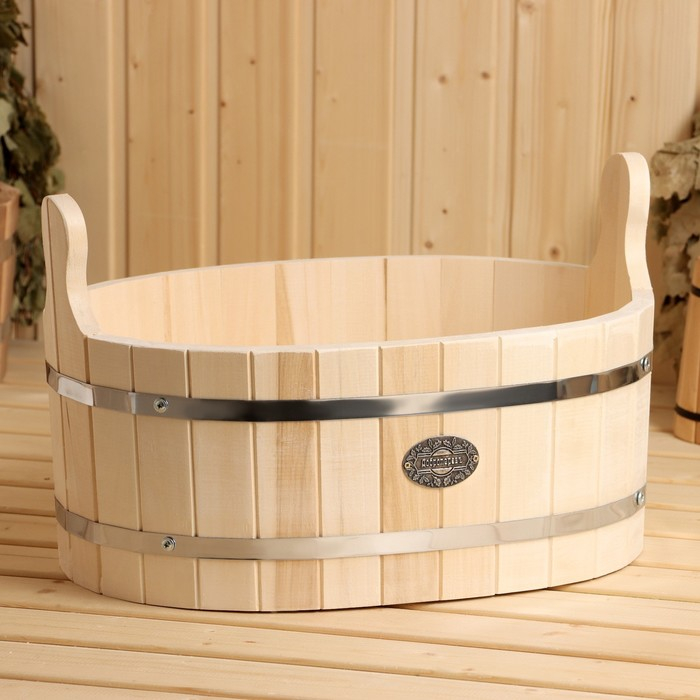 Шайка-таз из липы, 15 л, овальная, нержавеющий обруч, "Добропаровъ"