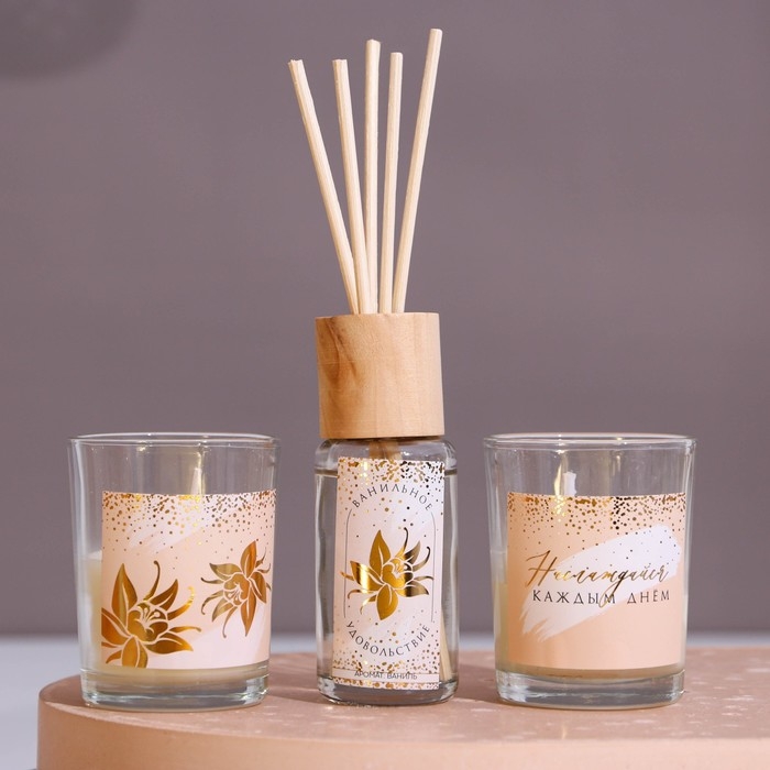 Диффузор ароматический и свечи интерьерные «Наслаждайся каждым днем», аромат ваниль, 20 х 12,5 х 5 см.