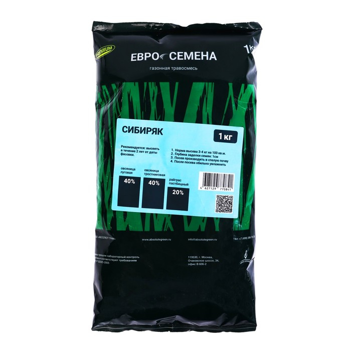 Семена Газонная травосмесь "Сибиряк", 1 кг