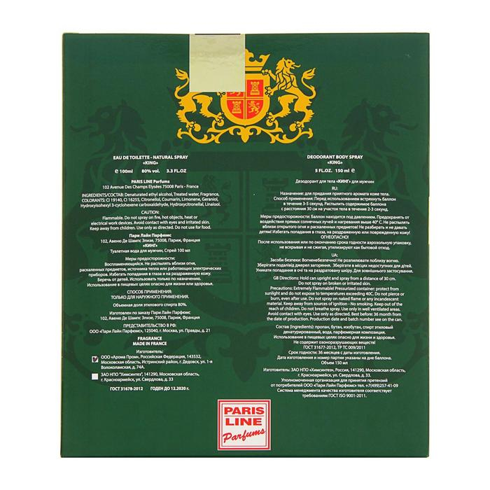 Подарочный набор для мужчин: Туалетная вода King+дезодорант