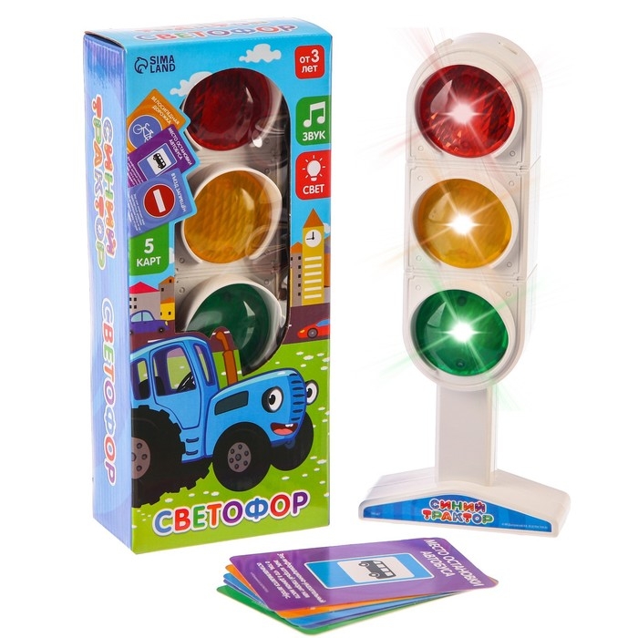 Светофор с обучающими карточками Синий трактор, световые и звуковые эффекты