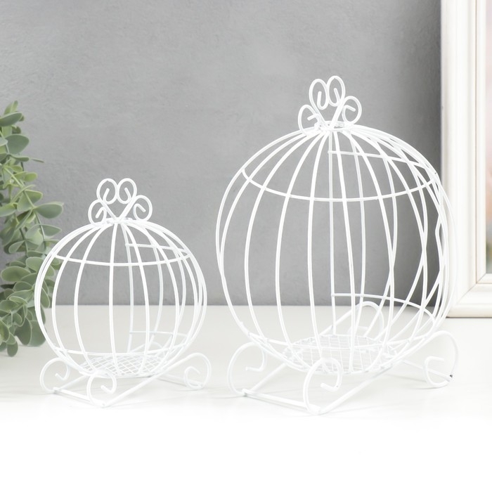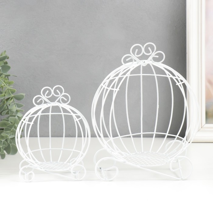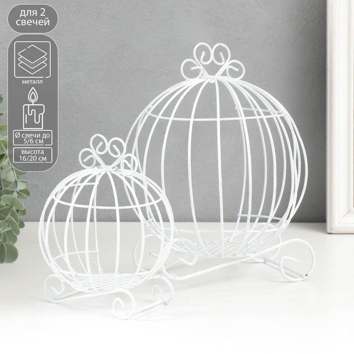 Подсвечник металл "Карета-тыква" белый набор 2 шт 16х12х9 см 20х14,5х12 см