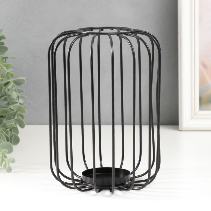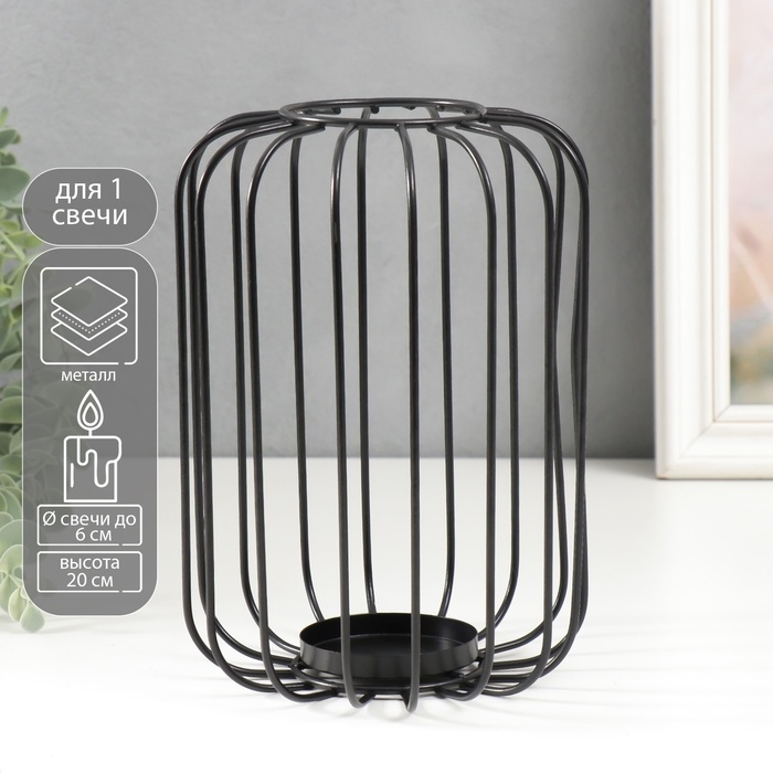 Подсвечник металл на 1 свечу "Лофт. Прутья" чёрный 20х13х13 см