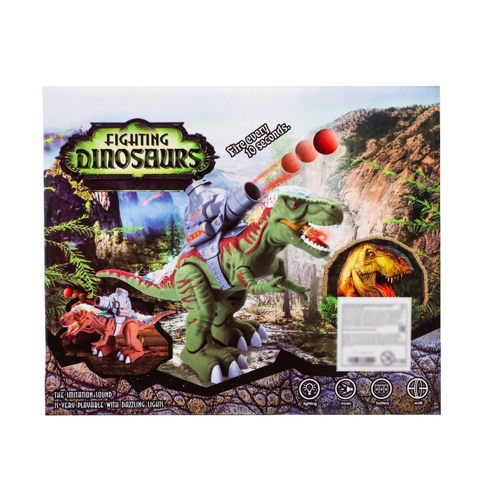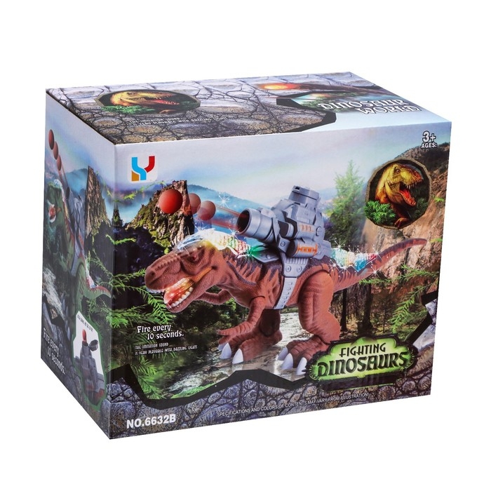 Динозавр «Рекс», стреляет шарами, работает от батареек, свет и звук, цвет коричневый