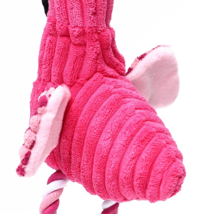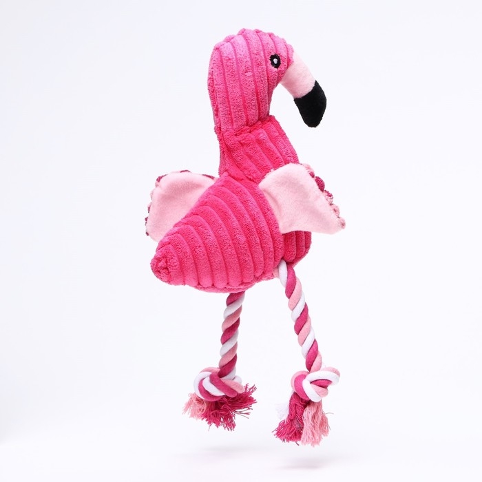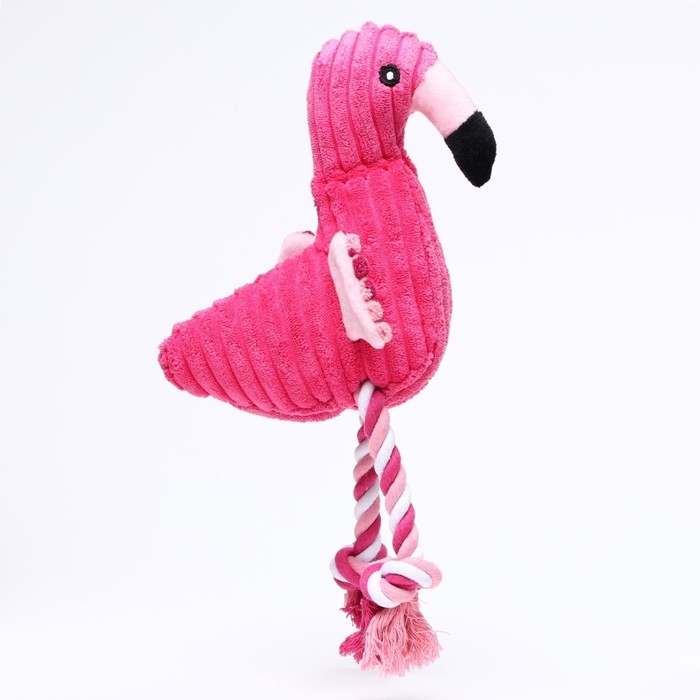 Игрушка мягкая для собак "Фламинго" с пищалкой и канатом, 37 х 16 см, розовая